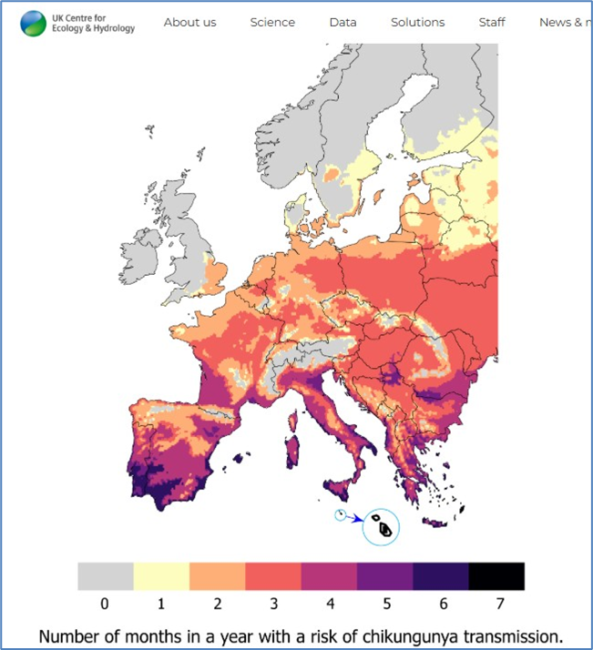 Eine im Journal of the Royal Society Interface veröffentlichte Studie ergab, dass das Chikungunya-Virus (CHIKV) von Asiatischen Tigermücken (Aedes albopictus) bereits bei Temperaturen von nur 13–14 °C übertragen werden kann. Dies sind 2,5 °C weniger als bisher angenommen (16–18 °C), wodurch sich die potenzielle Übertragungssaison in ganz Europa verlängert (Tegar S, et al. 2026). Frankreich und Italien verzeichneten 2025 Rekordausbrüche. Frankreich meldete am 26. November 2025 über 788 einheimische Chikungunya-Fälle in 81 Clustern (Französische Gesundheitsbehörde), und Italien meldete bis zum 31. Dezember 2025 insgesamt 472 bestätigte Chikungunya-Fälle (384 lokal erworbene Fälle und 88 reisebedingte Fälle) (EpiCentro, Italienisches Nationales Gesundheitsinstitut). Im Vereinigten Königreich (UK) wurden zwischen Januar und Juni 2025 insgesamt 73 Fälle von Chikungunya-Infektionen im Zusammenhang mit Reisen registriert, fast dreimal so viele wie die 27 Fälle im gleichen Zeitraum 2024 (UK Health Security Agency).
