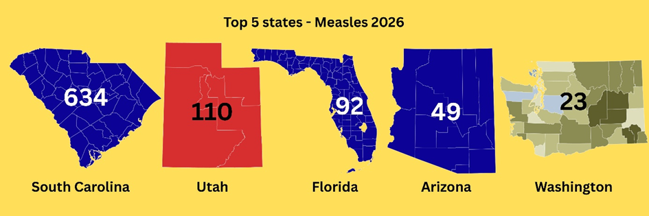 Vom 1. Januar bis zum 25. März verzeichnete das Gesundheitsministerium 8.021 bestätigte Fälle und acht Todesfälle. Seit dem Beginn des Ausbruchs Anfang Januar 2025 wurden 14.481 bestätigte Fälle und 35 Todesfälle gemeldet. Im Jahr 2026 wurden 58 Prozent aller bestätigten Fälle aus dem Bundesstaat Jalisco (4.668) gemeldet, gefolgt von Chiapas (671) und Mexiko-Stadt (624). Quelle: Outbreak News Today
