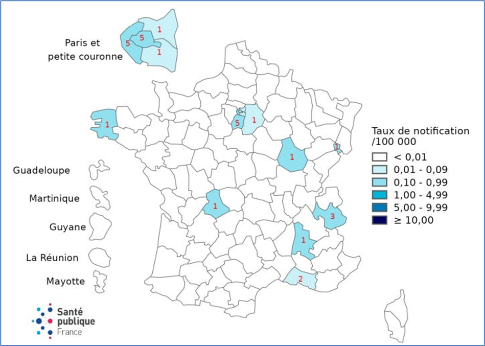 Die BS Arizona (1), Arkansas (1), Kansas (2), Maryland (1), Michigan (1) Mississippi (1) und Tennessee (2) haben Fälle von WNF bei Menschen gemeldet, davon waren fünf Fälle neuroinvasiv. Acht Blutspender wurden positiv auf das WNV getestet. Folgende US-Bundesstaaten haben Fälle bei Tieren und/oder Mücken gemeldet: Kalifornien, Nevada, Arizona, Texas, Oklahoma, Kansas, Louisiana, Arkansas, Mississippi, Tennessee, Florida, Illinois, Michigan, Ohio und New Jersey. Quelle: https://www.cdc.gov/west-nile-virus/data-maps/current-year-data.html